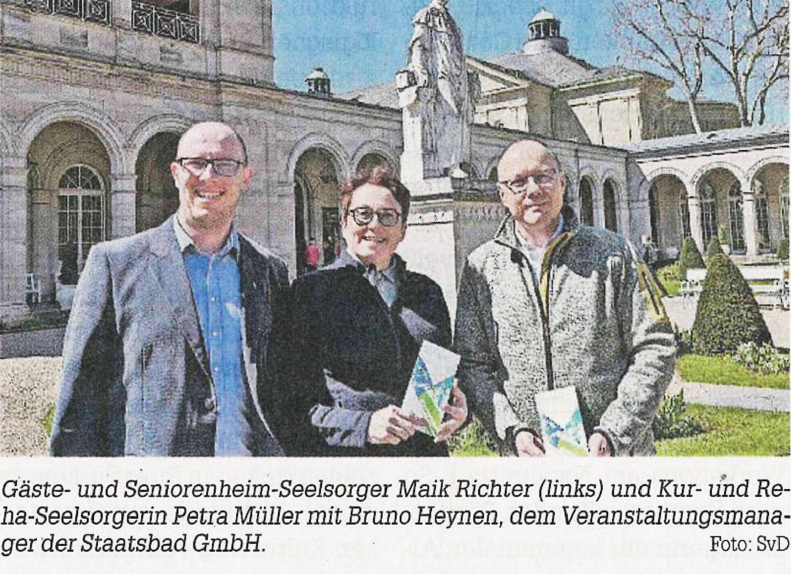 „Es ist das erste normale Jahr nach der Pandemie“, betonte dabei Petra Müller , Kur- und Reha-Seelsorgerin der katholischen Herz-Jesu-Gemeinde. Gemeinsam mit ihrem evangelischen Kollegen, Diakon Maik Richter, der seinen Arbeitsschwerpunkt in der Gäste- und Seniorenheim-Seelsorge hat, wollen beide in den kommenden sechs Monaten die Akzeptanz ihres Programms in der Öffentlichkeit prüfen, um für die Zukunft Verbesserungen vornehmen zu können.