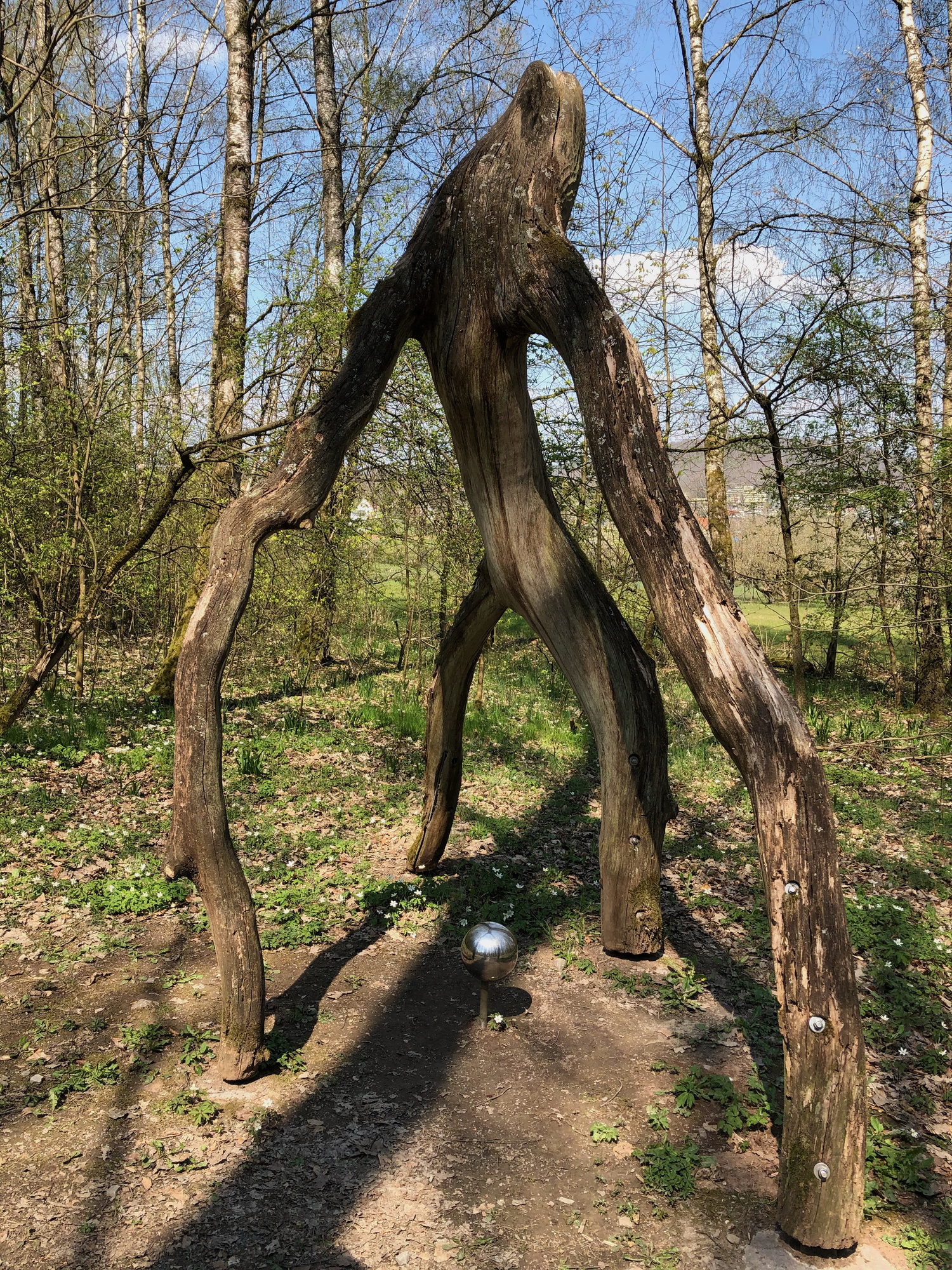 auf dem „Weg der Besinnung“ an einer Holzskulptur